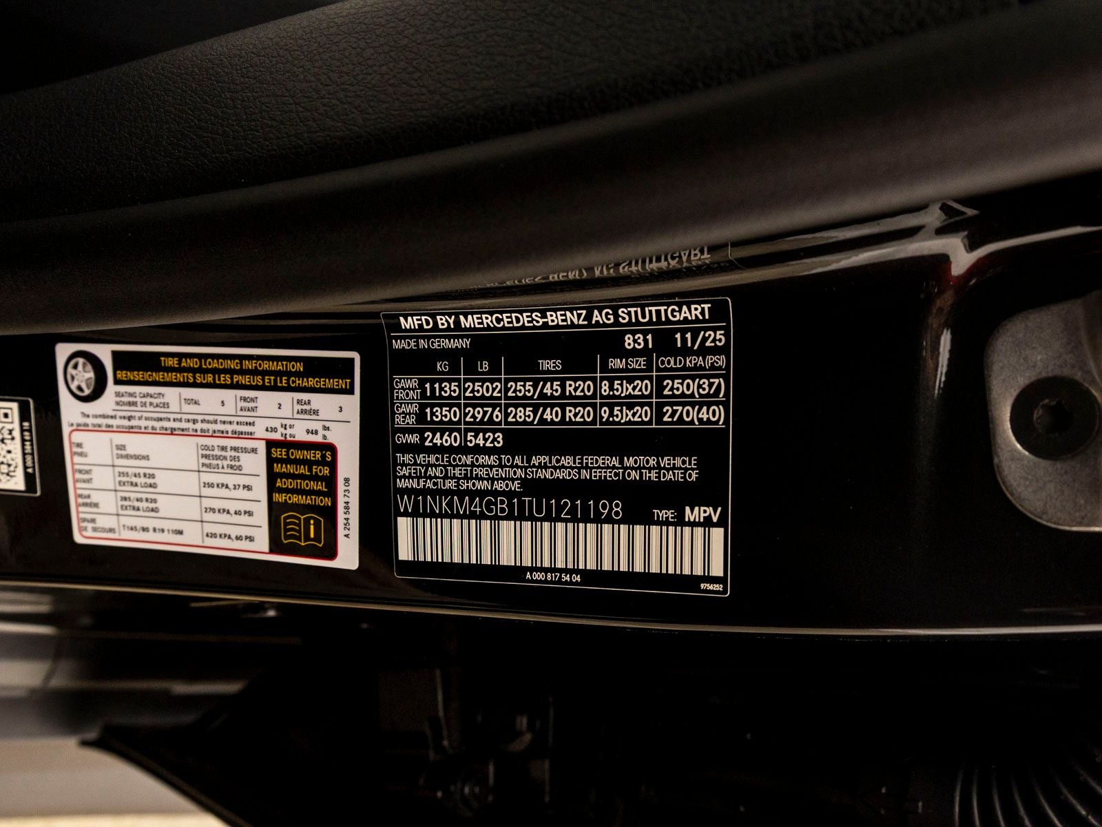 - Front Tire Size: P255/45VR20