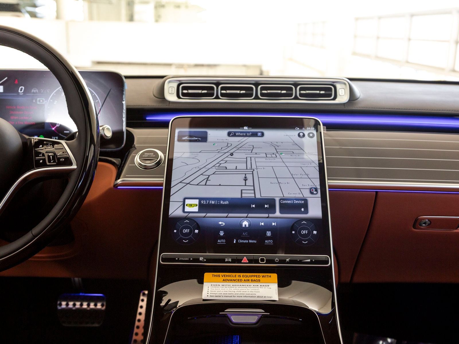 - Radio: MBUX w/Navigation -inc: 12.8" OLED touchscreen center display, 'Hey Mercedes' voice control, augmented video for navigation, wireless smartphone integration (Apple CarPlay, Android Auto), 8 USB-C ports (4 front, 4 rear), SiriusXM radio w/free trial period and online music streaming