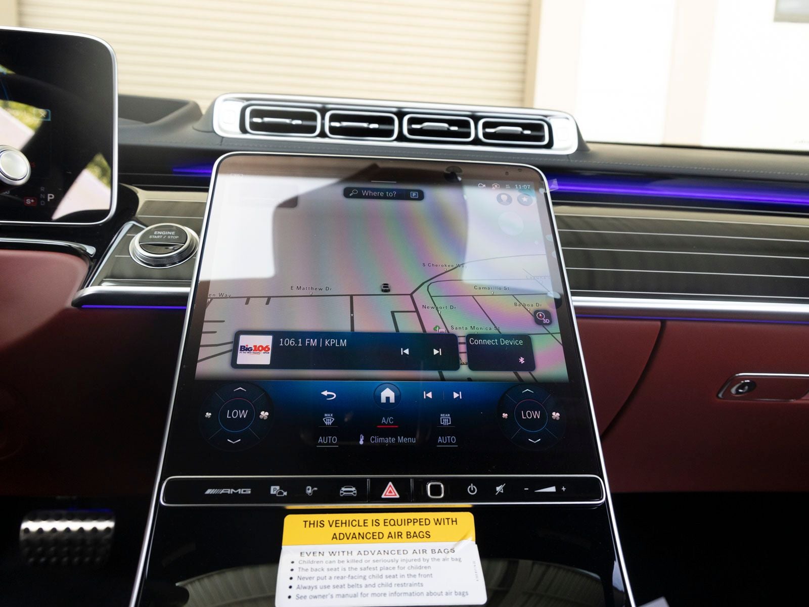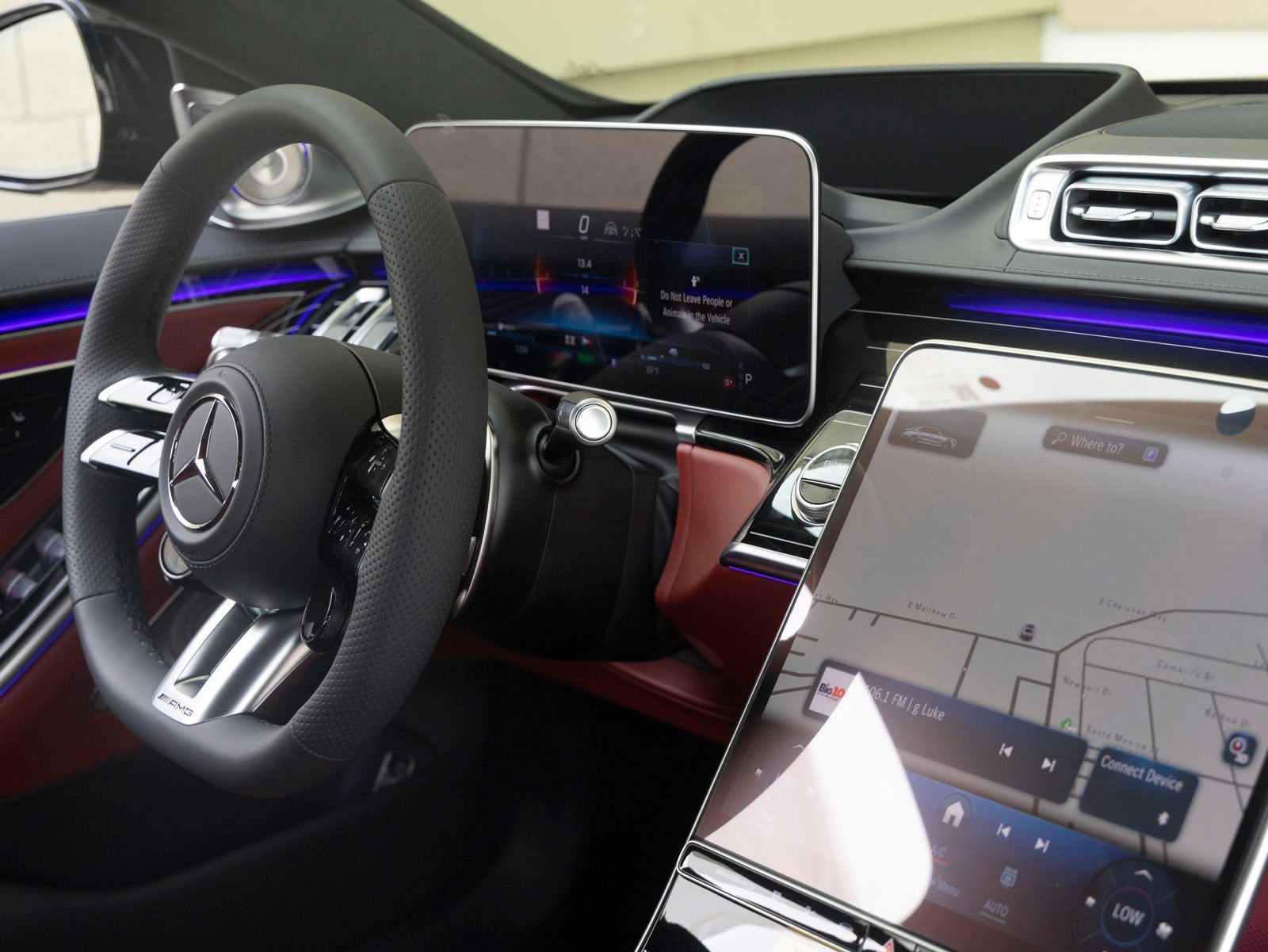- Radio: MBUX w/Navigation -inc: Burmester 3D surround sound system, sound personalization, 12.8" OLED touchscreen center display, 'Hey Mercedes' voice control, augmented video for navigation, front wireless charging, wireless smartphone integration (Apple CarPlay, Android Auto), 8 USB-C ports (4 front, 4 rear), SiriusXM extended subscription and online music streaming