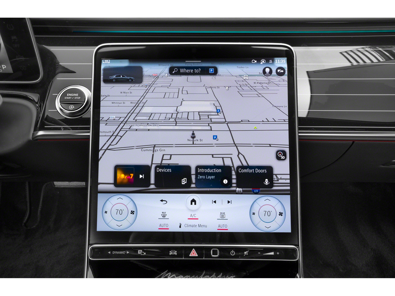 - Radio: Burmester 4D Surround Sound System -inc: sound personalization, 12.8" OLED touchscreen center display, MBUX w/navigation and Hey Mercedes voice control, augmented video for navigation, wireless smartphone integration (Apple CarPlay, Android Auto), 8 USB-C ports (4 front, 4 rear), SiriusXM extended subscription, 5G capability and online music streaming
