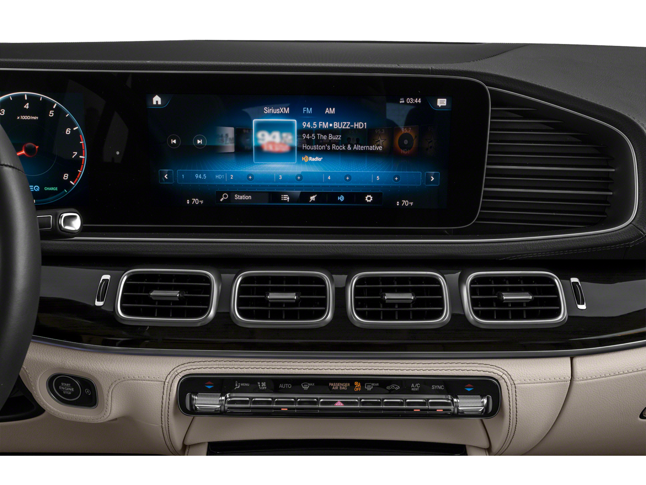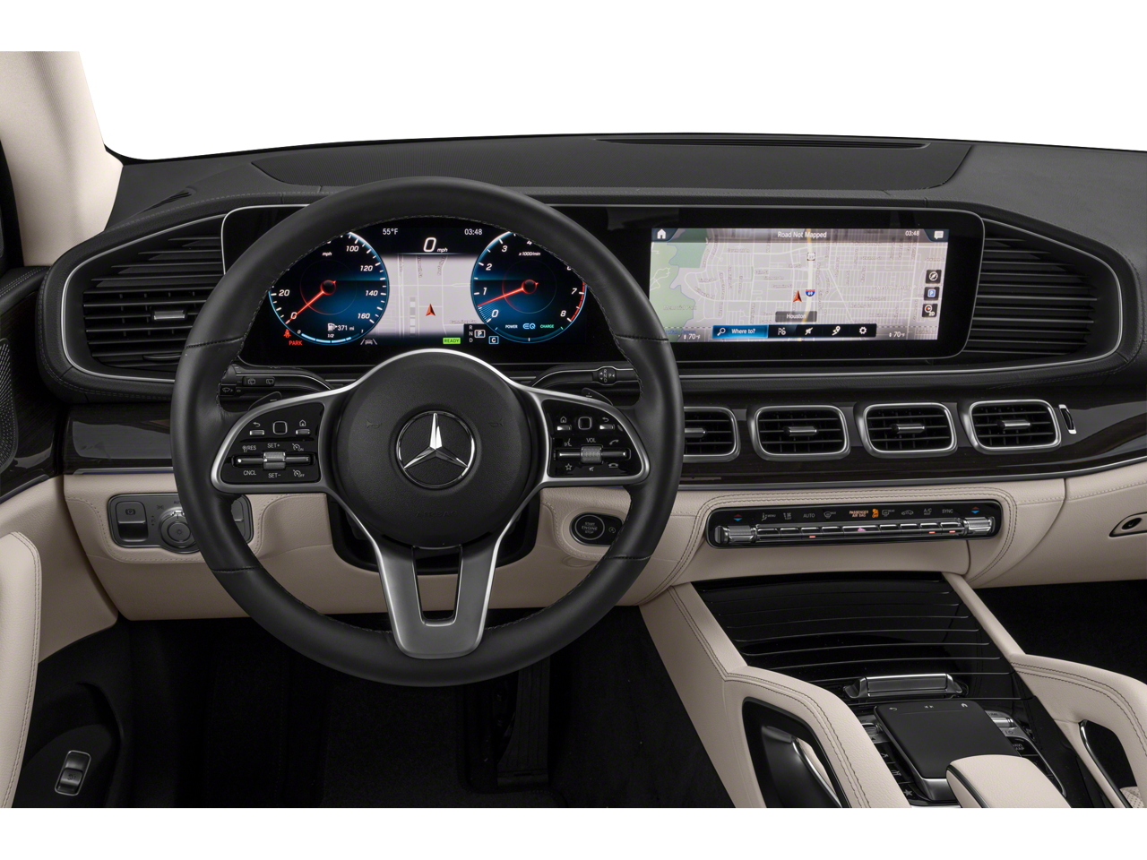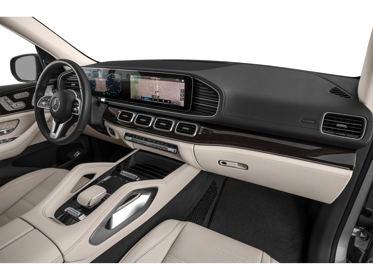 Step inside and the Almond Leather interior greets you, exuding an atmosphere of first-class comfort and craftsmanship. The cabin is elevated with Natural Grain Grey Oak Wood Trim, 64-Color Ambient Lighting, and a premium Burmester Surround Sound System. Luxurious amenities such as Multicontour Front Seats with Massage, Heated & Ventilated Front Seats, and the Warmth & Comfort Package create an indulgent driving environment, while advanced technology like the MBUX Multimedia System, Head-Up Display, and Augmented Reality Navigation keeps you seamlessly connected.