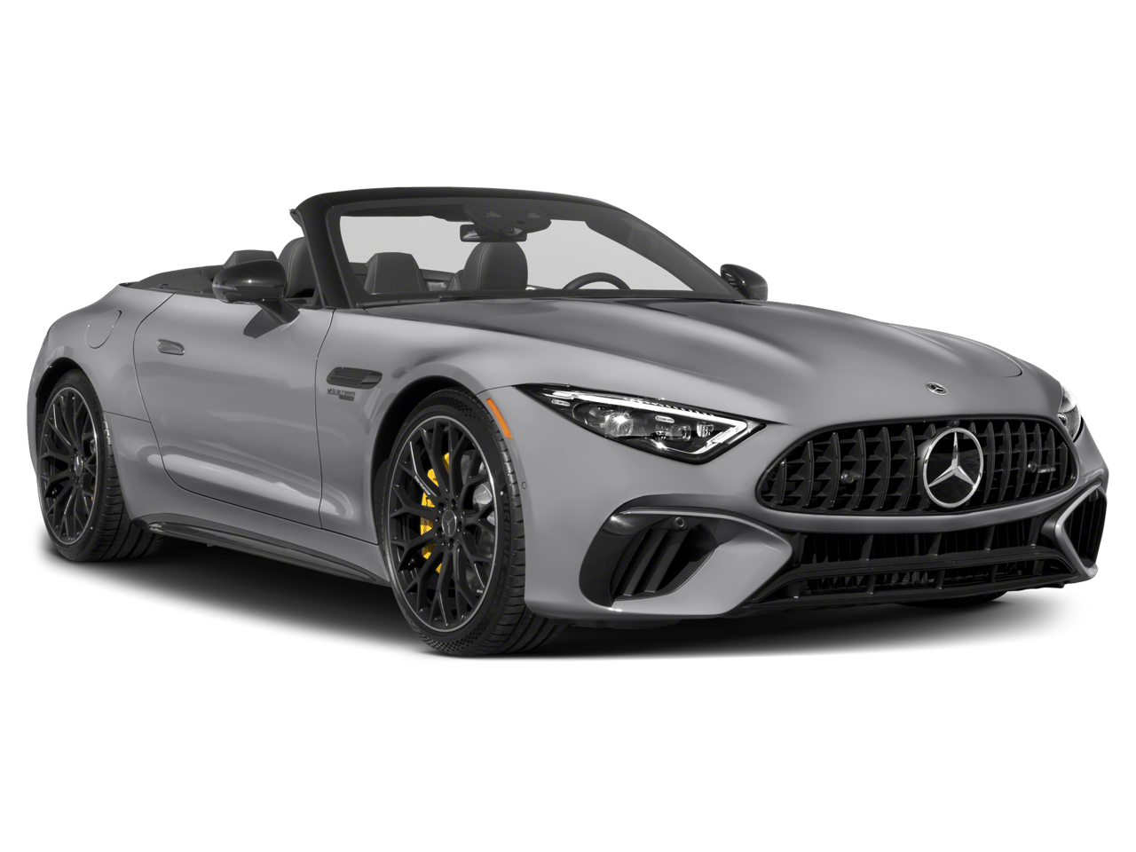 The AMG SL 55 represents a bold return to performance roots, combining iconic roadster styling with modern AMG aggression. Its Alpine Grey exterior is accented by the AMG Exterior Night Styling Package, 21-inch AMG Multi-Spoke Y-Design Wheels in Black, yellow AMG brake calipers, and a sleek black soft top. DIGITAL LIGHT headlamps, rear-axle steering, and AMG ACTIVE RIDE CONTROL suspension give this SL a commanding presence and exceptional handling, whether carving canyon roads or cruising the boulevard.