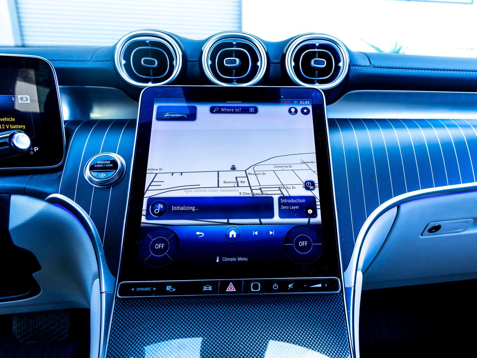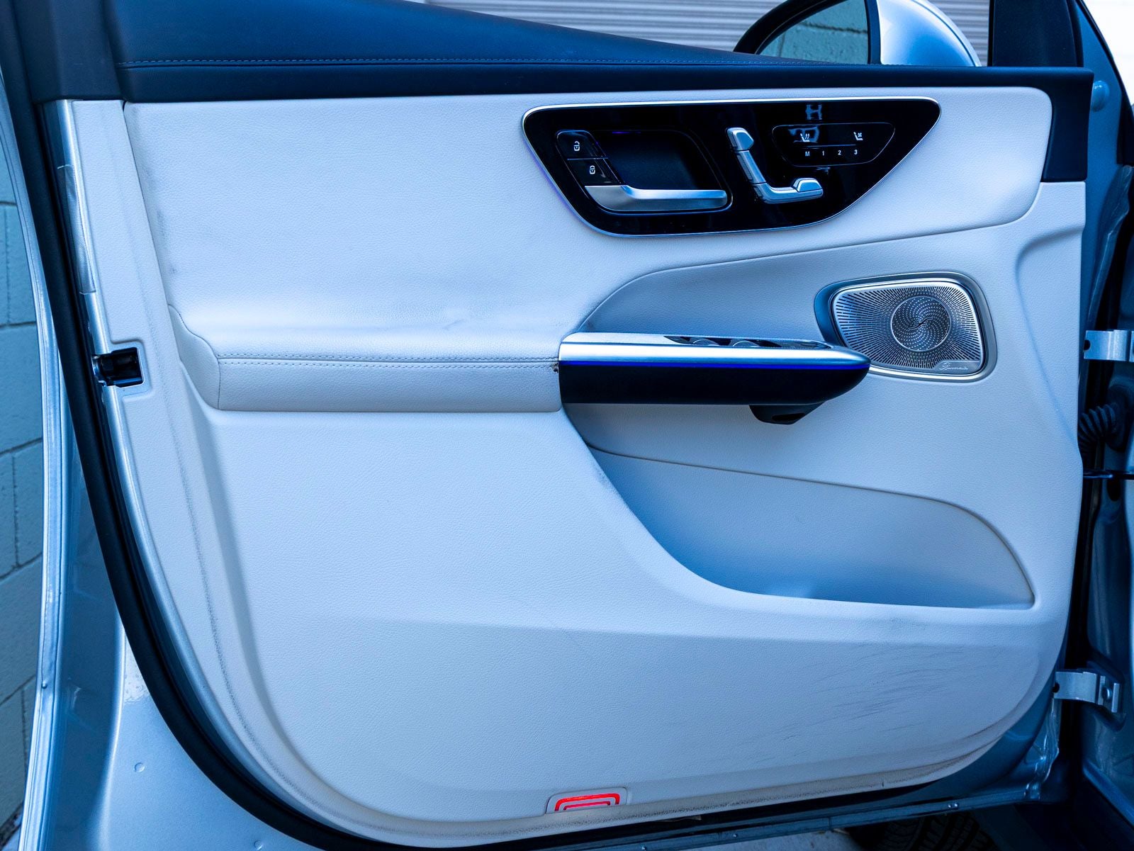 Step inside and the Macchiato Beige MB-Tex cabin welcomes you with contemporary luxury and advanced digital innovation. The expansive 12.3 Digital Instrument Cluster and 12.3 Center Display with MBUX Navigation Premium create an immersive driving environment. The Burmester Surround Sound System delivers concert-quality audio, while Heated & Ventilated Front Seats, Enhanced Ambient Lighting, and Natural Grain Black Wood with Aluminum Lines trim elevate every drive with refined comfort.