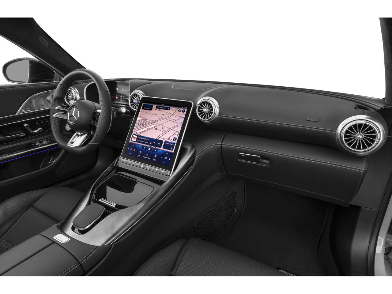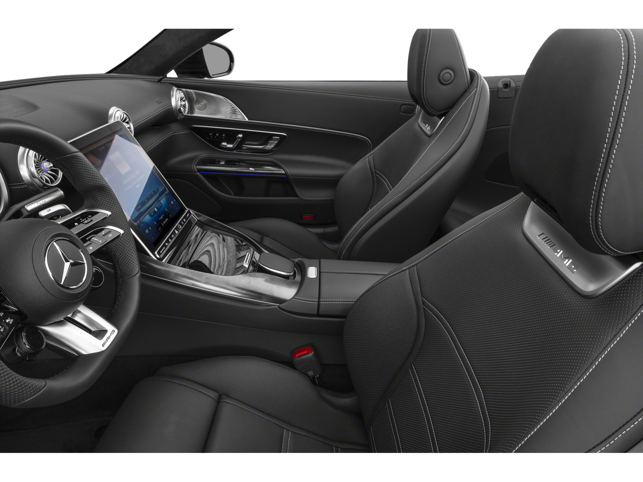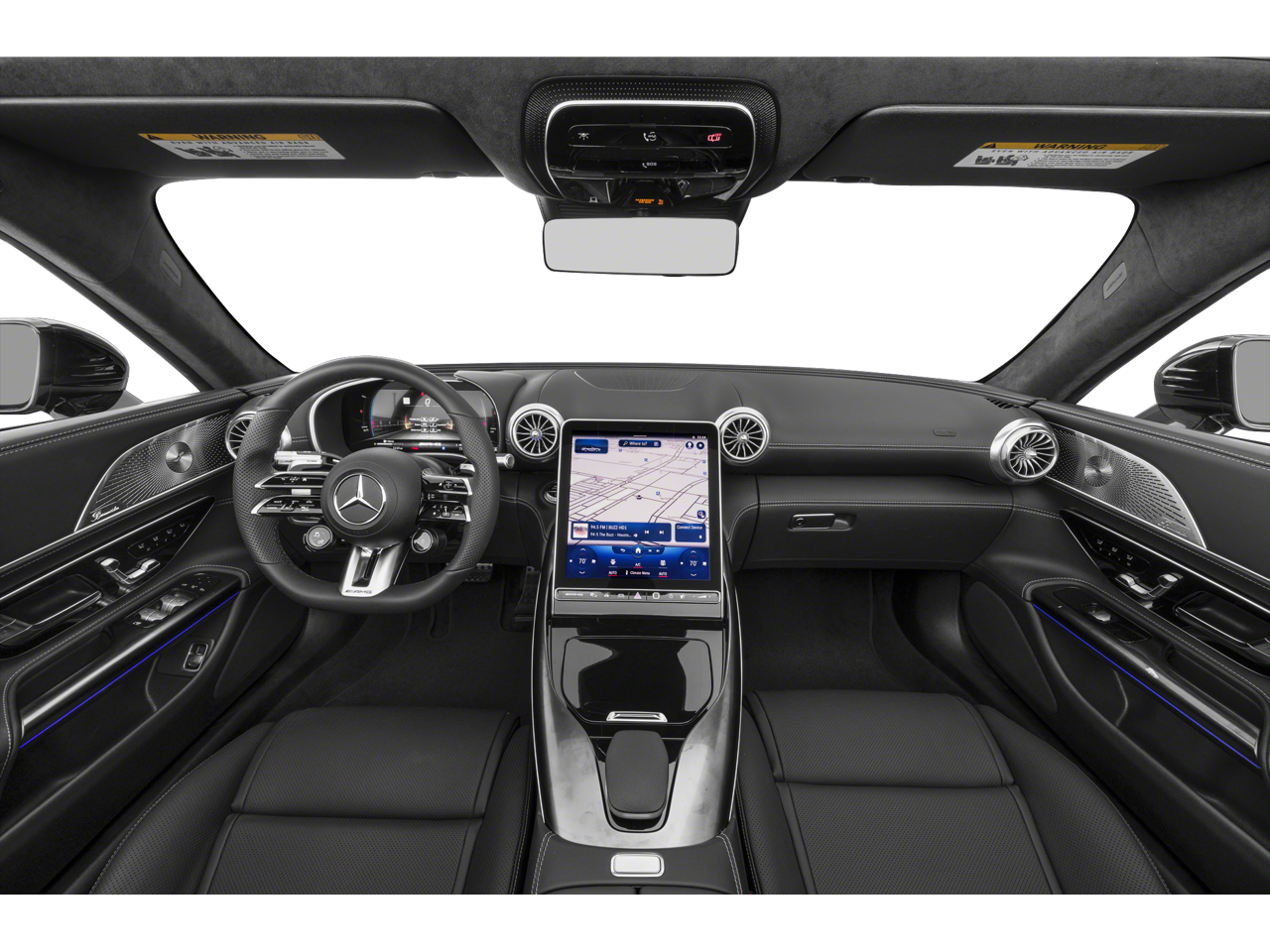Step inside and the Black Nappa Leather Interior greets you, exuding an atmosphere of performance luxury that only Mercedes-AMG can deliver. The cabin is highlighted by an AMG Performance Steering Wheel in Nappa Leather, AMG Aluminum Trim, and a MANUFAKTUR Black Microfiber Headliner that enhances the cars racing-inspired ambiance. Comfort and technology come together with Multicontour Front Seats with Massage Function, Multicolor Ambient Lighting, and the immersive Burmester Surround Sound System.